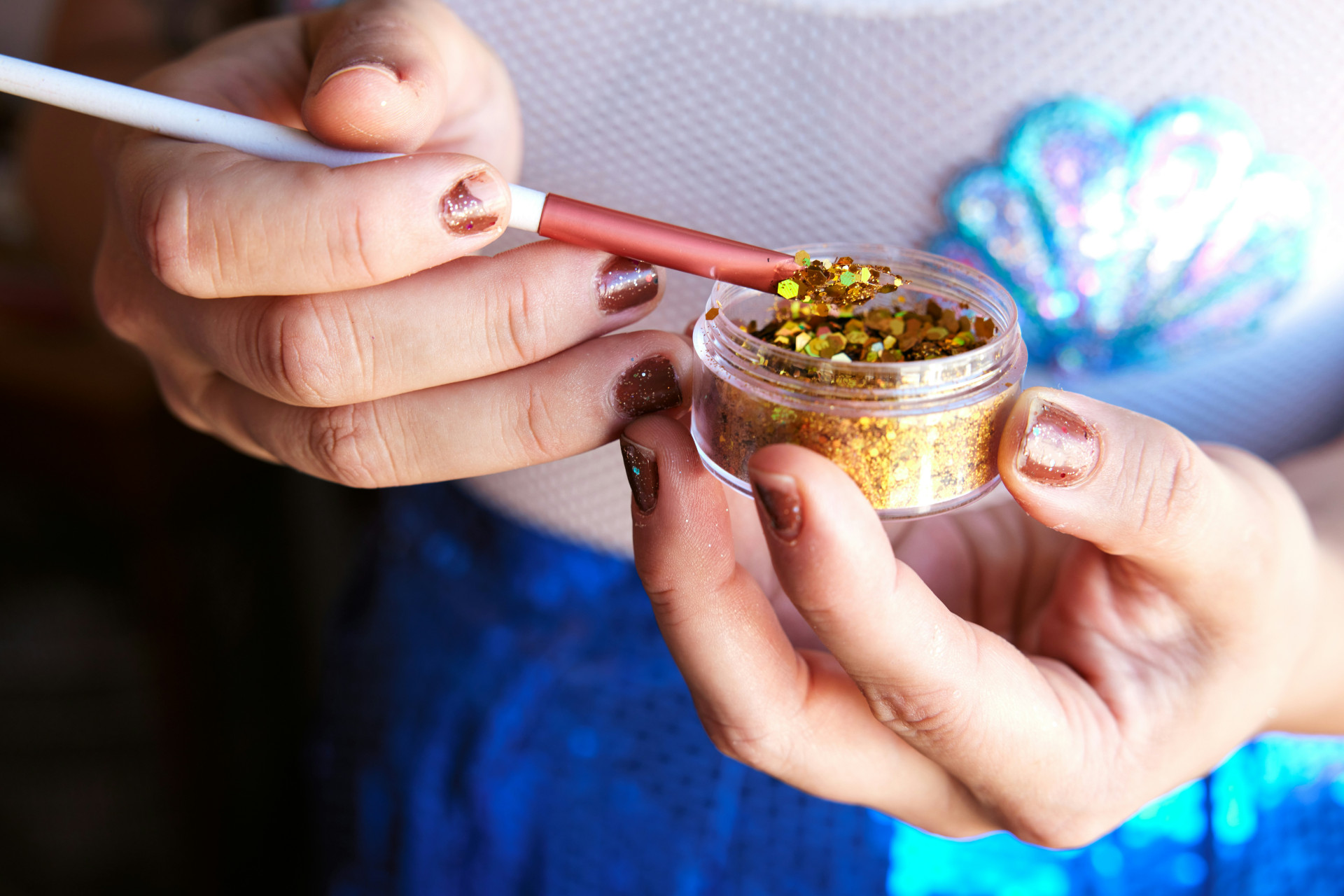 Dup produktet forsigtigt ind med ringfingeren – den har det letteste tryk og mindsker risikoen for at trække i huden.